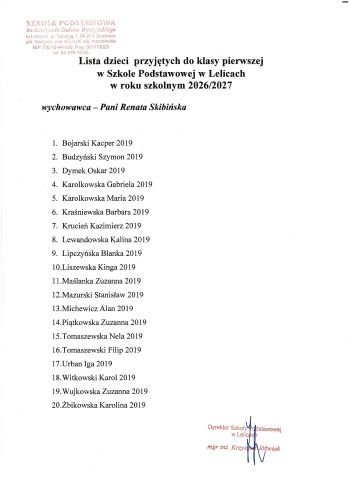 Lista wychowanków przyjętych do oddziałów przedszkolnych. Rok szkolny 2026/2027