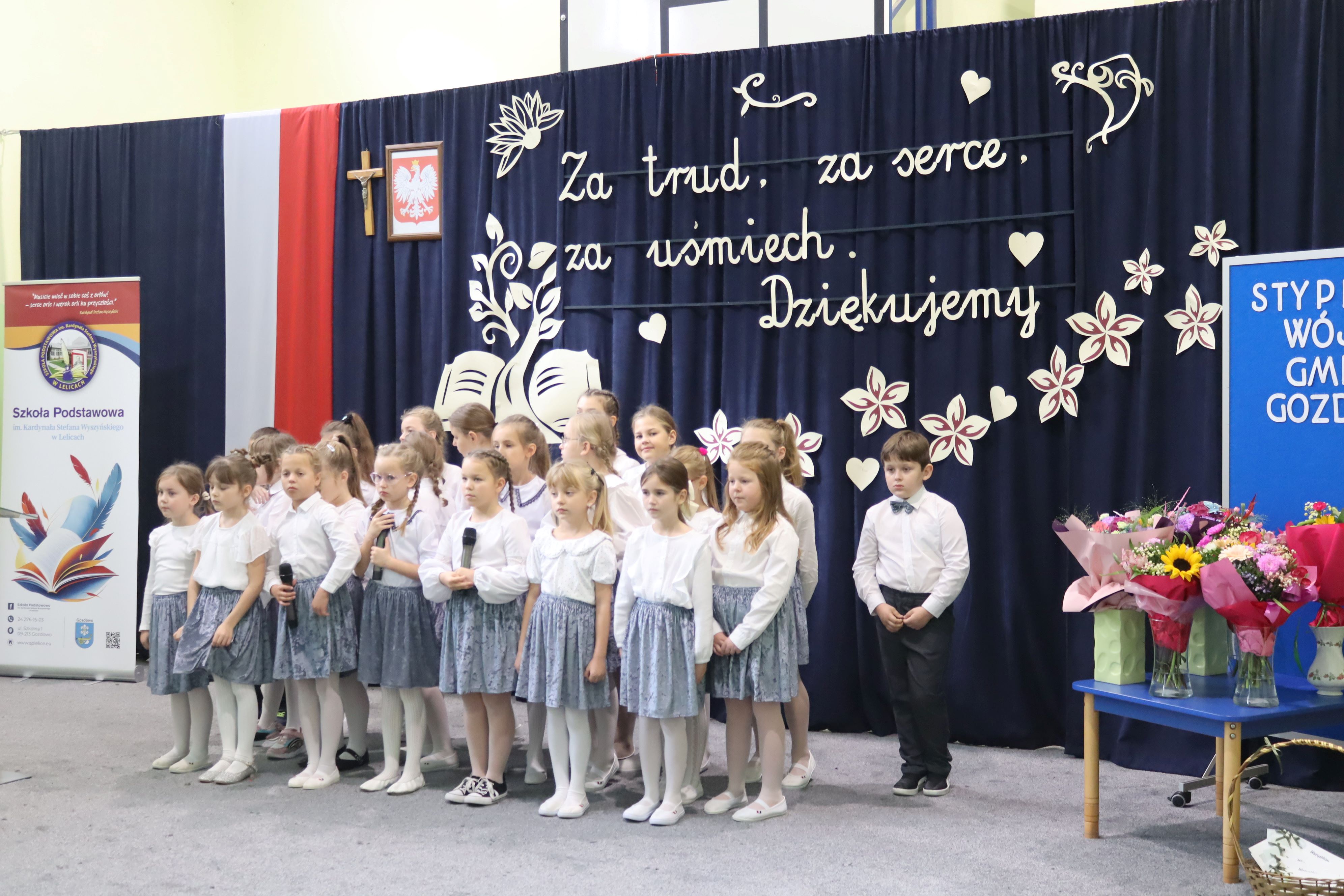 W dalszej części uroczystości głos zabrał Dyrektor szkoły, który złożył serdeczne życzenia wszystkim pracownikom oświaty, nauczycielom, rodzicom i uczniom, podkreślając znaczenie wspólnej pracy i zaangażowania w wychowanie młodego pokolenia.